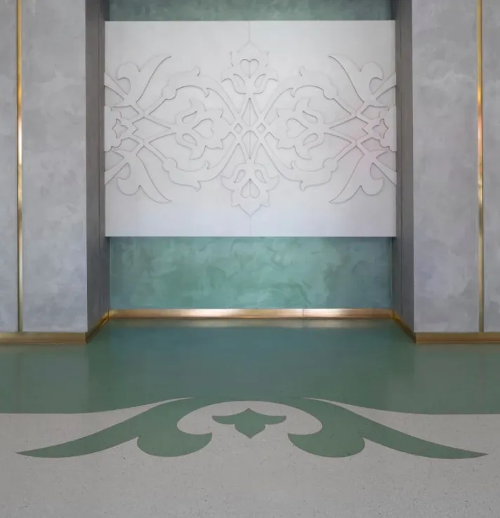 Терраццо‑фаршҳои Linolit TERRAZZO дар фазоҳои ҷамъиятии Казанский Кремл: қаҳвахонаи «Ураган Сарай», тарабхонаи «Алан Аш» ва маркази таъли…