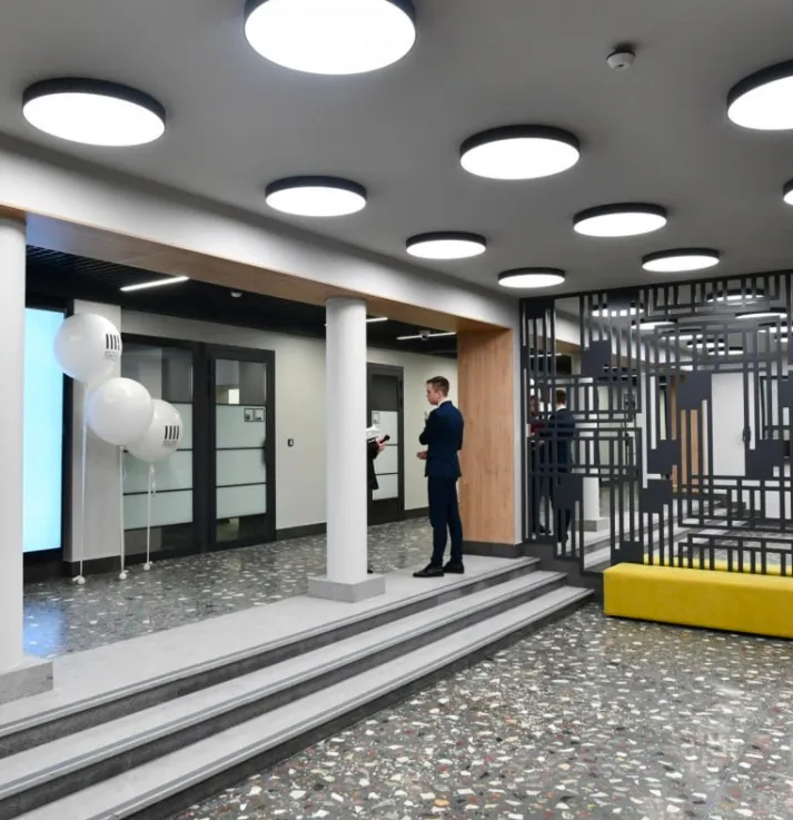 Терраццо‑фаршҳои Linolit TERRAZZO барои институти лоиҳакасии шаҳрӣ ва банақшагирии стратегӣ дар Қазон. Пӯшиш бояд борҳои ҳаррӯзаи кормандон ва меҳмонон, кӯчонидани мебел, техникаи офисӣ ва аробаҳо ро нигоҳ дорад ва ҳамзамон намуди ҷиддӣ, аммо муосири фазоҳои ҷамъиятиро ҳифз намояд. Ҳамчун референс объекти шарикон да…